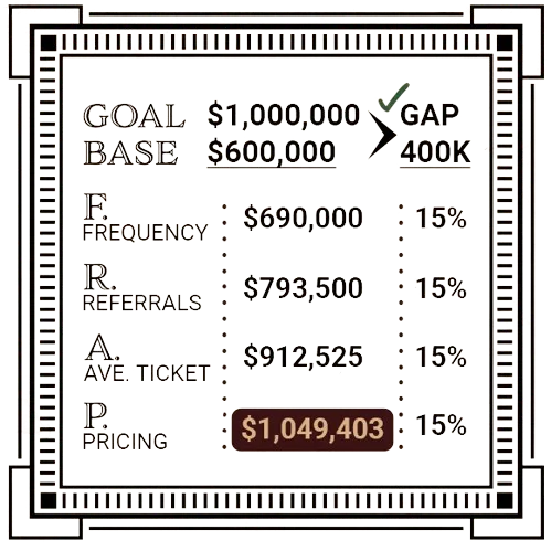 By increasing each of these 4 levers just 15%, a $600,000 company can cross the $1,000,000 mark without spending any additional money!